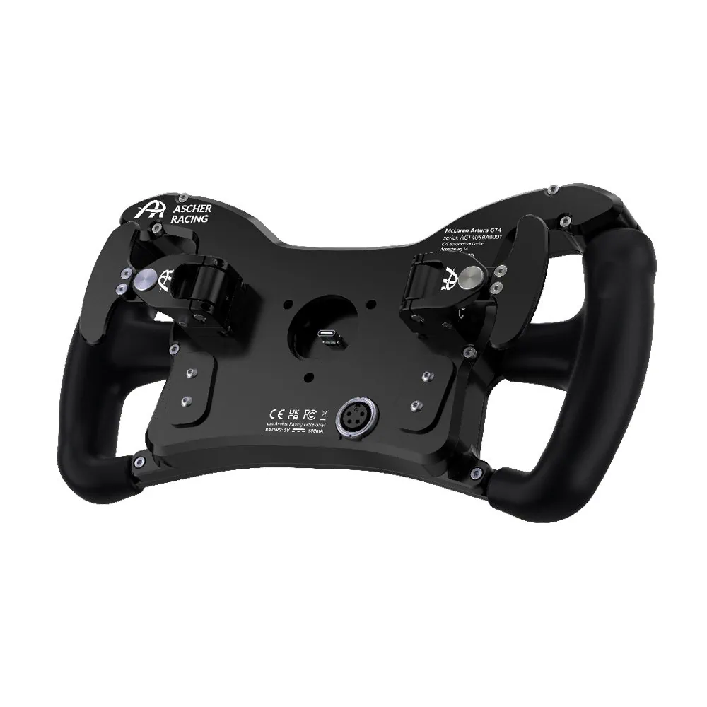 The Ascher Racing McLaren Artura GT4 steering wheel is an authentic replica of the real McLaren Artura GT4 steering wheel, designed for use in high-end simracing environments. With faithful components, a diameter of 300 mm and the same ergonomics as the steering wheel of a real racing car, this steering wheel offers an unrivaled, realistic driving experience. Equipped with advanced technology and materials, such as CNC-milled aluminum and real carbon, this steering wheel sets new standards in terms of durability and functionality.