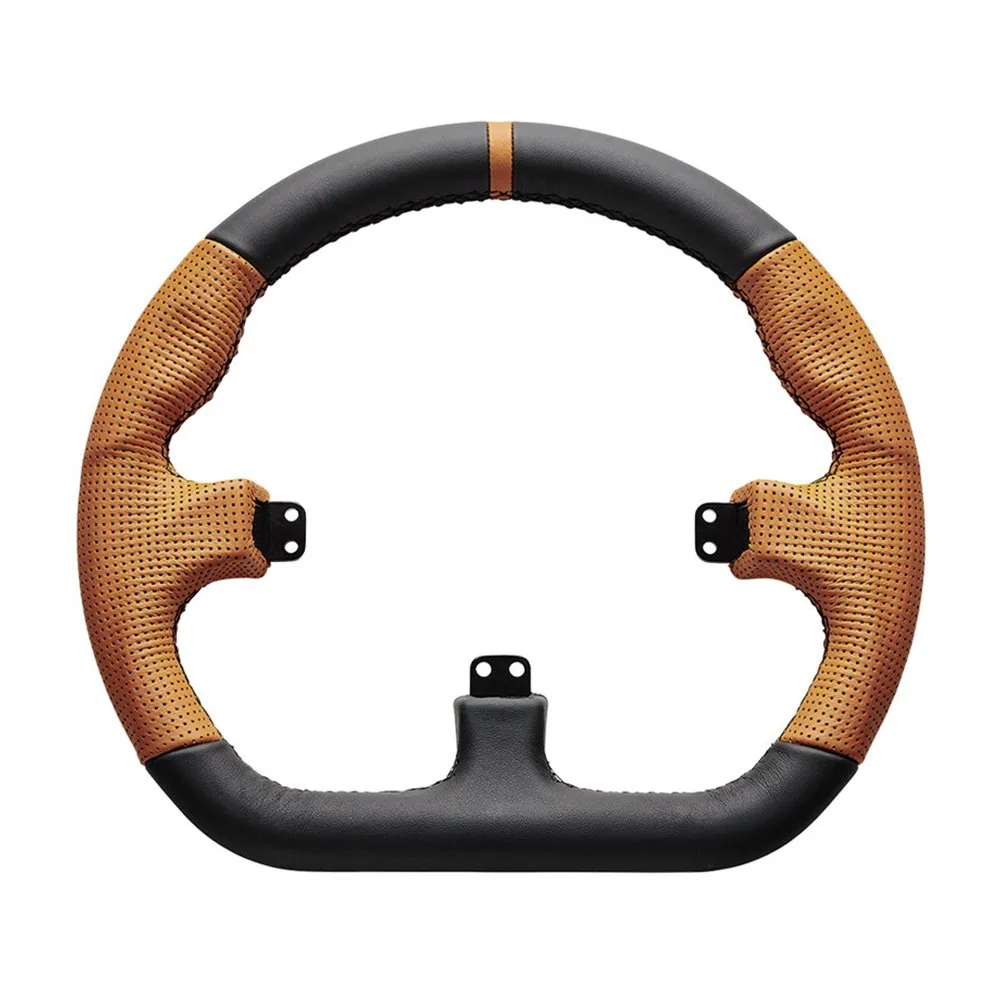 The Asetek Racing Closed D Orange Leather Rim is a handcrafted steering wheel that combines luxury and versatility in sim racing. It adapts seamlessly to different racing styles and is designed for smooth roads, GT cars, various terrains as well as competitive racing. Made from high quality materials reminiscent of real sports cars, this rim offers both durability and authenticity. The genuine, hand-stitched leather and the closed D-shape ensure comfort and ergonomics and offer more legroom.