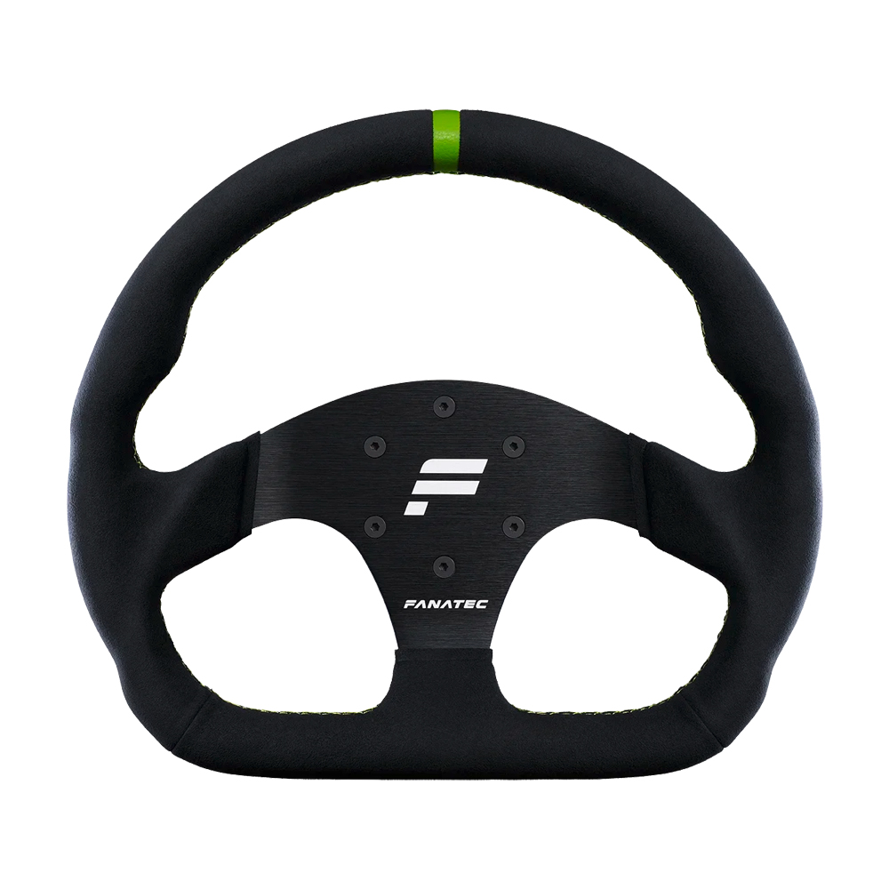 The Fanatec ClubSport GT Alcantara V2 Rim is a 330 mm diameter steering wheel with real Alcantara and lime green accents. It offers comfortable grip, a classy look and is perfect for GT racing simulators.