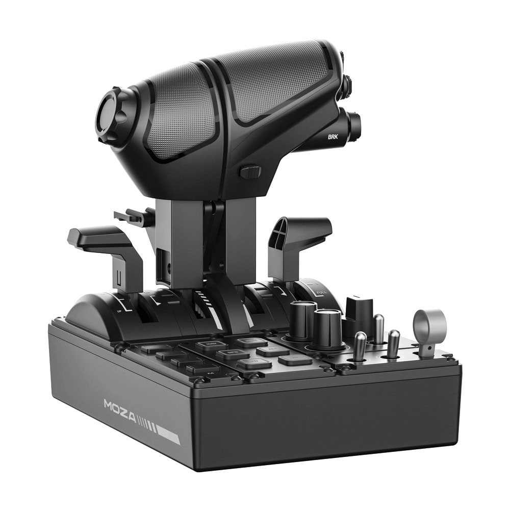 The MOZA MTQ Throttle Quadrant is a sophisticated, modular throttle system for demanding flight simulation. With interchangeable throttle levers for fighter jet, Airbus and Boeing setups, precise damping adjustment, realistic detents and a versatile control panel, it delivers maximum authenticity, control and flexibility for modern PC flight simulators.