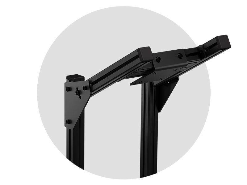 The Sabelt Quad Monitor Mount makes it possible to mount an additional service monitor above the monitors used while driving and to adjust its angle. This system is an ideal addition to a comprehensive simracing setup.