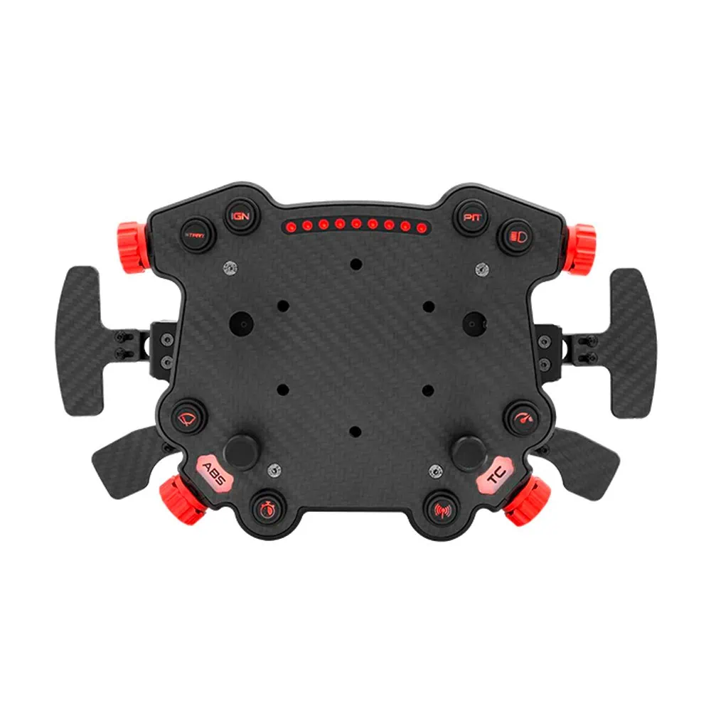 The hub is made of CNC-machined aluminum and has a carbon front and fits 320 - 350 mm steering wheels. Equipped with magnetic shift paddles, it combines all of Simagic's know-how.
