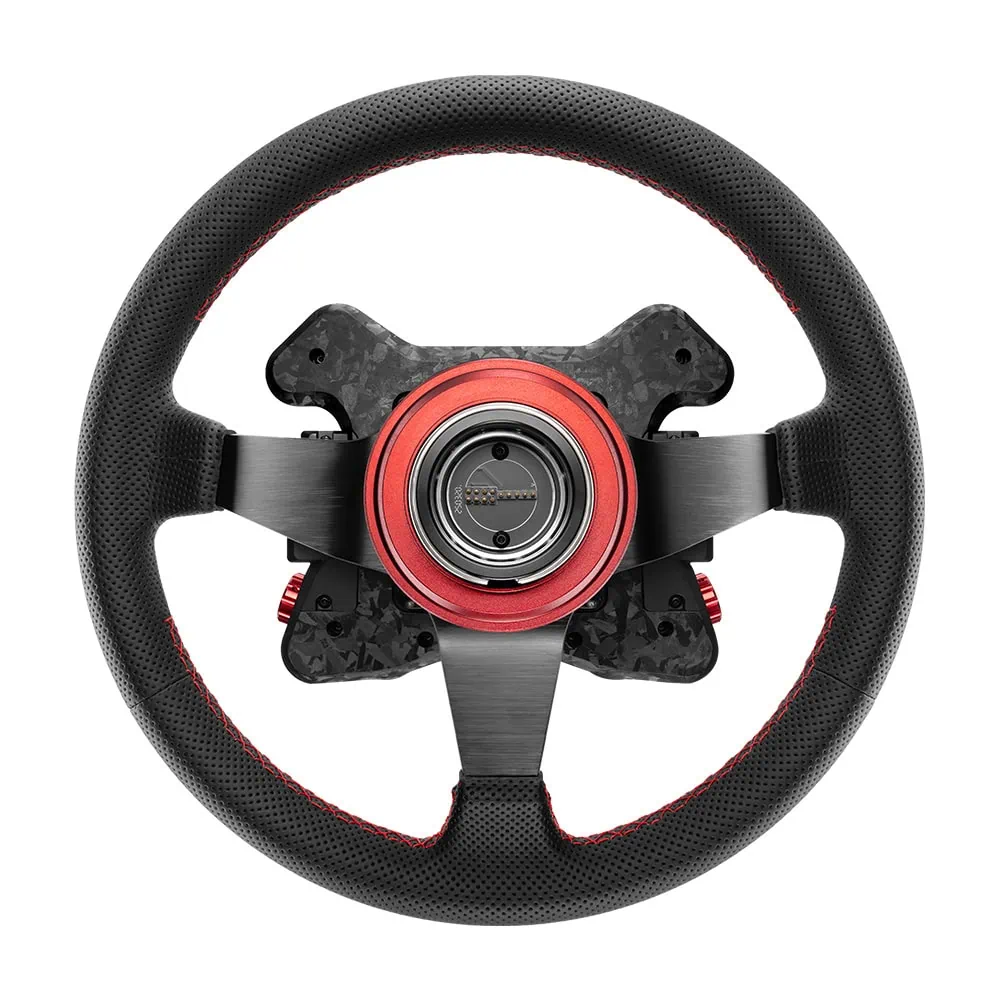 The Simagic Neo X-350W is the perfect steering wheel for drift fans looking for maximum control and precision. With a generous diameter of 349 mm and a one-piece CNC aluminum frame, it not only offers a stable base, but also a perforated synthetic leather cover that provides exceptional grip. The red stitching and 3/9-O'Clock full leather extension with angled corners give the steering wheel an eye-catching, sporty aesthetic designed specifically for drift use.