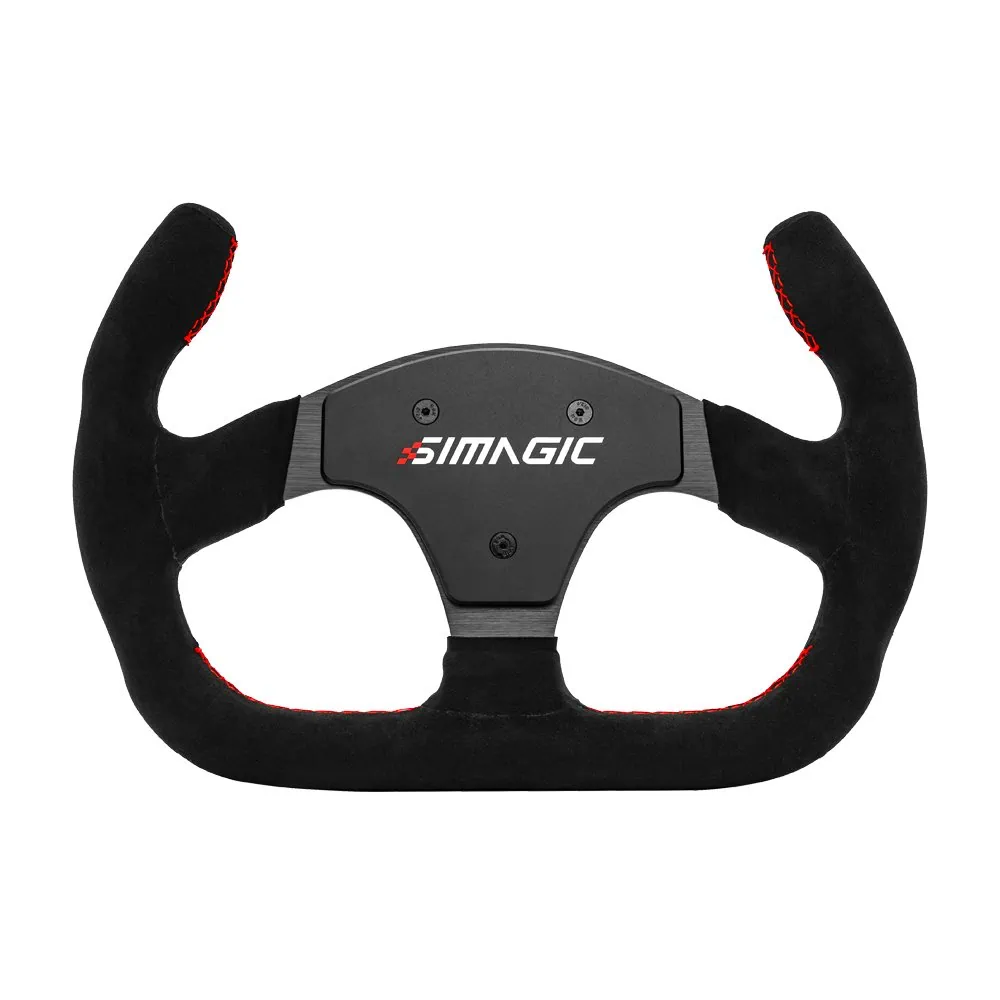 The Simagic P-325C is a high-quality simracing steering wheel made of Alcantara and CNC aluminum alloy. It is characterized by its wear-resistant, sweat-resistant surface and a comfortable non-slip grip. With a diameter of 320 mm and a mounting system with M5 countersunk screws, it is ideal for demanding racing simulations.
