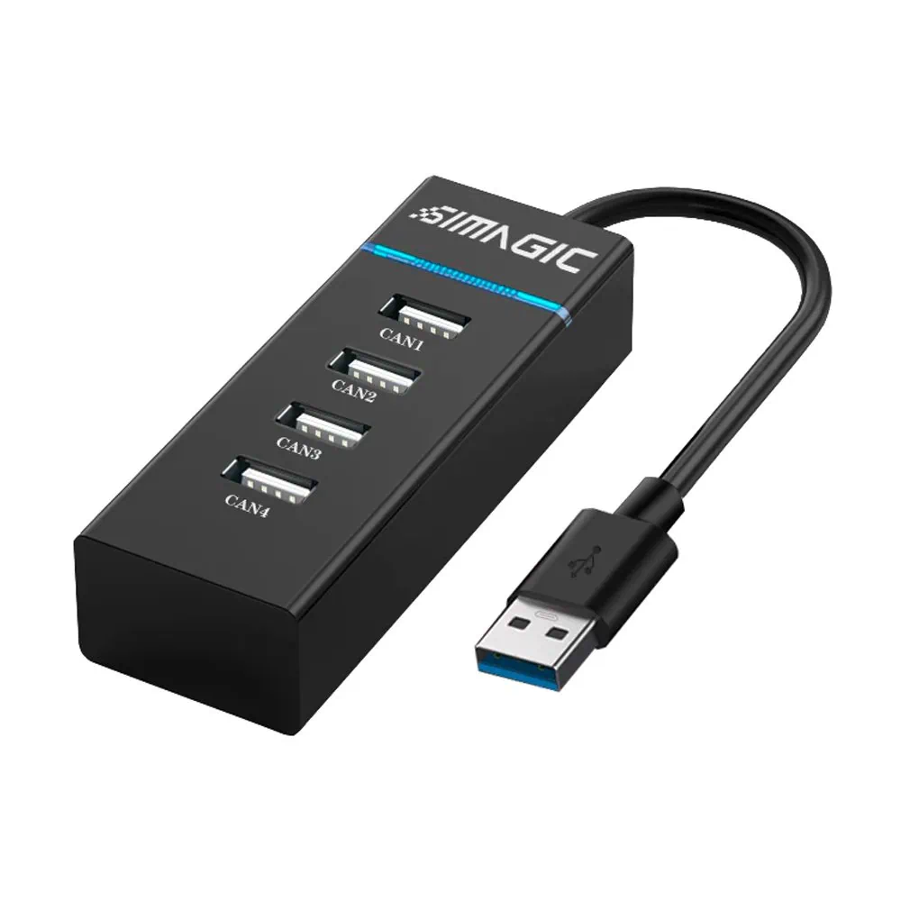 The Simagic USB Extender is a practical accessory that allows the Simagic P2000 pedals as well as the Simagic Shifter and the handbrake to be connected directly to the Alpha, Alpha Mini or Alpha Ultimate Wheel Base. This results in a reduced number of USB cables leading to the PC as the extender provides a central connection point.